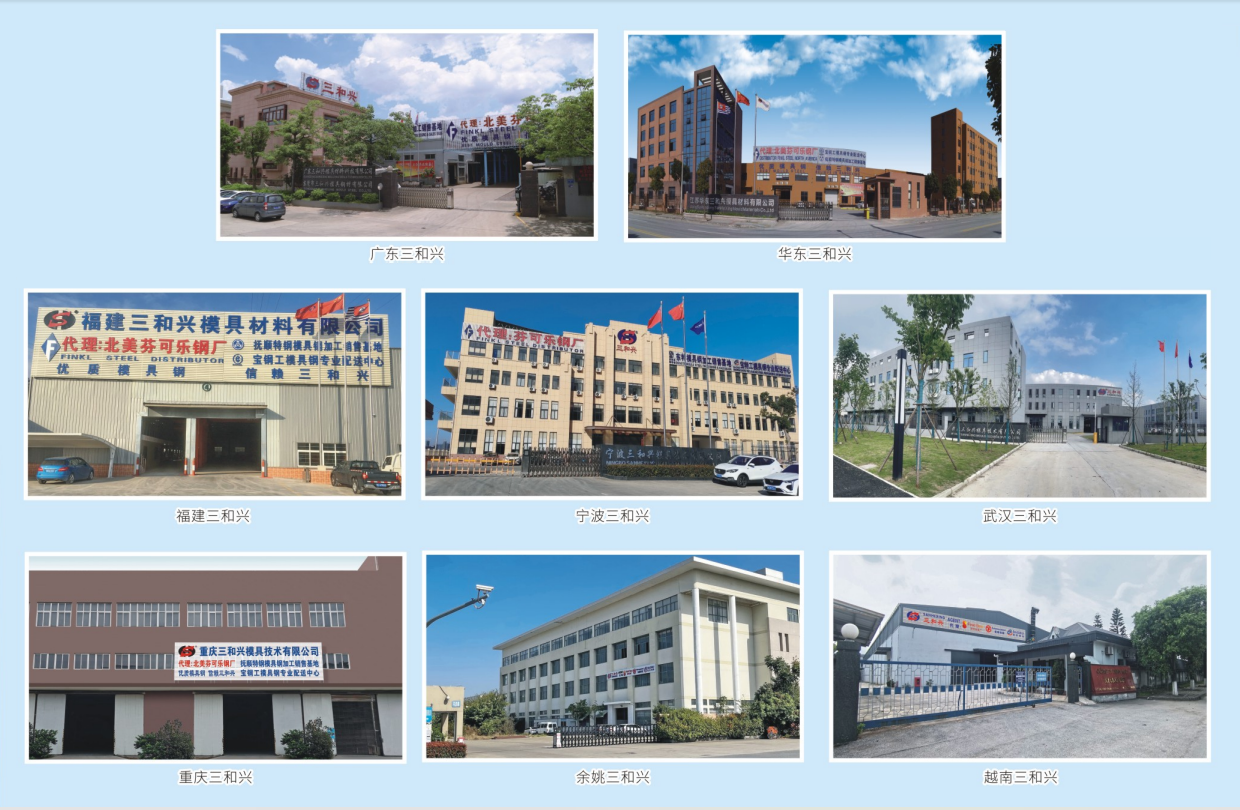 三和興旗下廣東三和興模具材料科技有限公司(東莞三和興),投資用地17畝,2005年新建標(biāo)準(zhǔn)化廠房12000㎡,為三和興集團(tuán)化管理總部所在地;江蘇華東三和興模具材料有限公司,于2013年1月在江蘇昆山成立,投資用地40畝,新建標(biāo)準(zhǔn)化廠房25000㎡;福建三和興模具材料有限公司于2017年9月在福建泉州成立,于2024年喬遷至廈門;寧波三和興模具技術(shù)有限公司,于2018年11月在寧波寧海成立,投資用地32畝,新建標(biāo)準(zhǔn)化廠20000㎡;武漢三和興模具技術(shù)有限公司,于2020年11月在武漢市經(jīng)開區(qū)成立,投資用地23畝,新建標(biāo)準(zhǔn)化廠房12000㎡;重慶三和興模具技術(shù)有限公司,于2021年9月在重慶璧山成立運(yùn)營,并投資用地25畝,新建標(biāo)準(zhǔn)化廠房15000㎡,計劃于2025年投產(chǎn);三和興(越南)模具技術(shù)有限公司,于2023年4月在越南興安成立,投入標(biāo)準(zhǔn)化廠房6000㎡;余姚三和興模具技術(shù)有限公司,于2023年7月在寧波余姚成立運(yùn)營,計劃投資用地30畝新建標(biāo)準(zhǔn)化廠房;佛山市三和興模具技術(shù)有限公司,于2023年12月在廣東佛山成立,投資用地20畝,新建標(biāo)準(zhǔn)化廠20000㎡,計劃于2025年竣工,2026年投產(chǎn);中山市三和興模具材料有限公司,于2024年2月在廣東中山成立 ,投入標(biāo)準(zhǔn)化廠房近4000㎡,為周邊區(qū)域客戶提供高效快捷的就近服務(wù)。